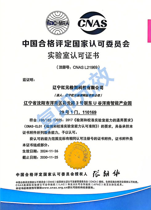 辽宁红元检测科技有限公司是以国防为主、民用为辅的专业检测技术公司,成立于2019年7月,公司业务主要涵盖铸造件、锻造件、焊接件、热处理件、制造件、金属结构件、复 合材料结构件、增材制造件、在役件等无损检测、理化分析、金相分析、疲劳试验、腐蚀 试验及环境可靠性试验、应力检测及应力消除、复合材料及3D打印检测等专业技术服务 与质量控制服务。